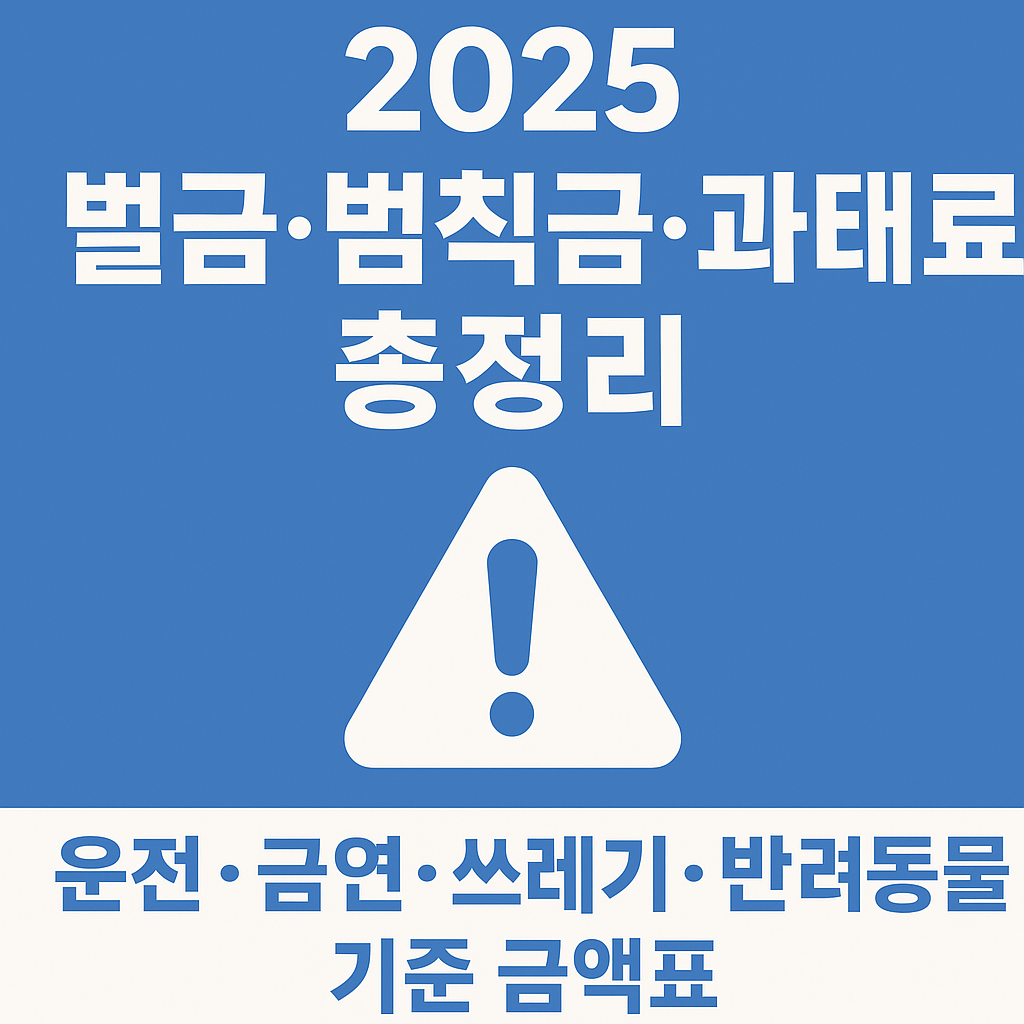 운전 과속·신호·불법주정차, 어린이보호구역, 금연구역 흡연, 쓰레기 무단투기, 반려동물 배설물·목줄·등록 위반까지 2025년 기준 금액을 한 번에 정리했습니다. 출처: 경찰청 eFINE 공지, 국가법령·지자체 고시. 사례별 절약 팁과 이의제기 기본 흐름까지 담았습니다.